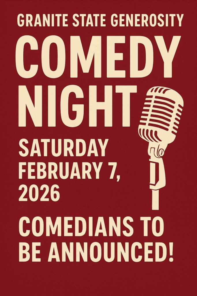 Comedy Night Come for the laughs, stay for the cause! What: Comedy Show When: Saturday, February 7, 2026 Doors open @ 6pm Show begins @7pm Where: Intervale Country Club Cost: $25 per person (21+) Tickets coming SOON!