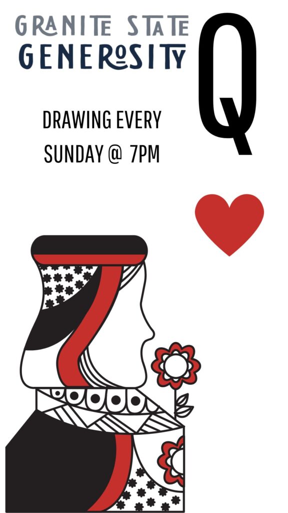 The Queen Of Hearts. We place a full deck of cards in individual envelopes (virtually) and randomly number the envelopes. You buy tickets (3 for $10) and choose which envelope(s) number (s) you think are lucky. Each Sunday at 7pm we draw a winner. That winners lucky envelope number is then opened. IF it contains the Queen of Hearts, the winner gets 1/2 the current pot. If the Queen is not drawn, the pot continues to grow and tickets go on sale again for the week- and every week until someone discovers the Queen.